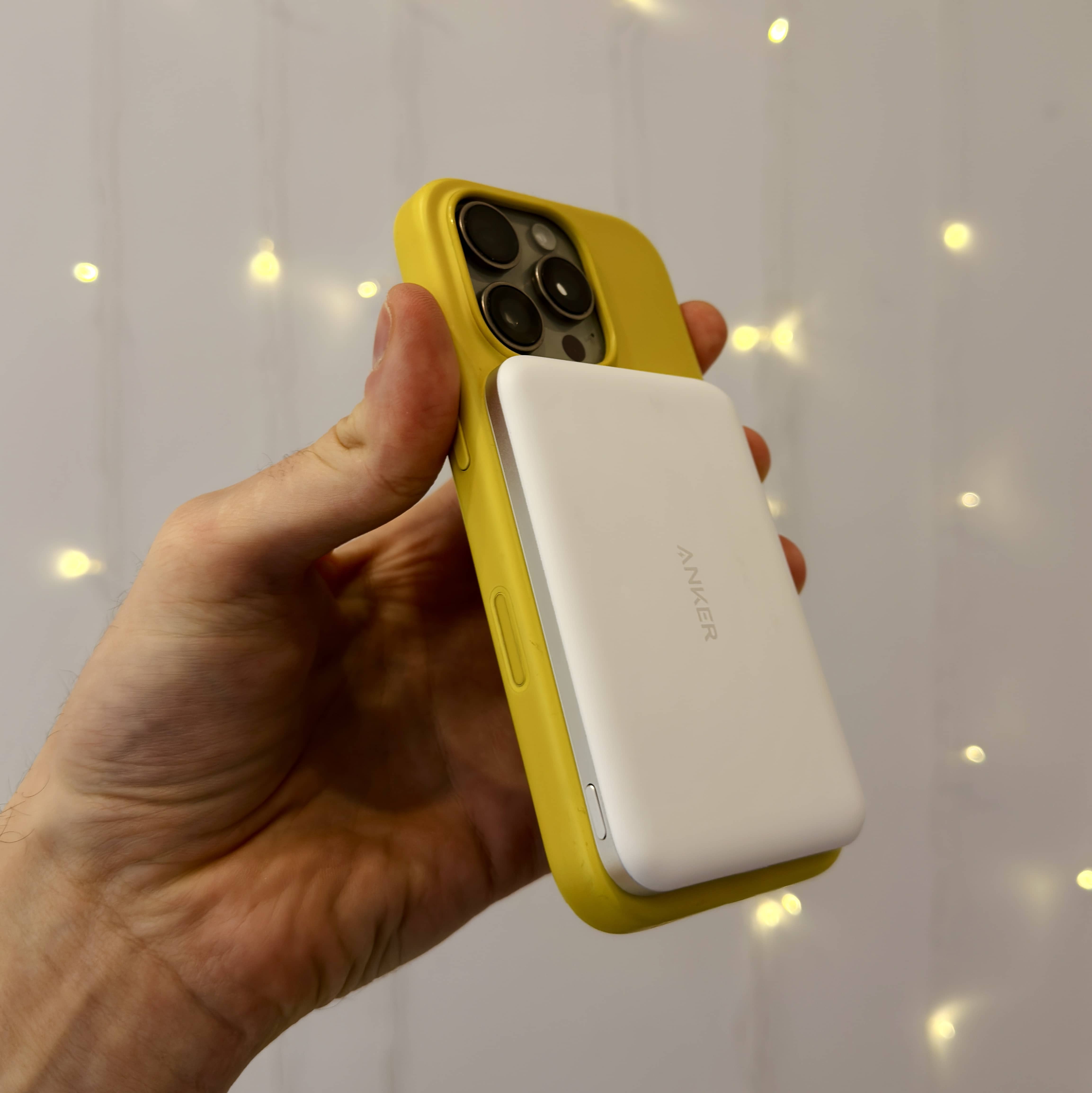 И у одного из ребят в команде, я увидел красивенный и тонкий магсейф аккумулятор на 5000 mah от Anker, который я купил на чёрную пятницу. Работает как надо, очень удобный, ничего не блокируется и почти не греется.