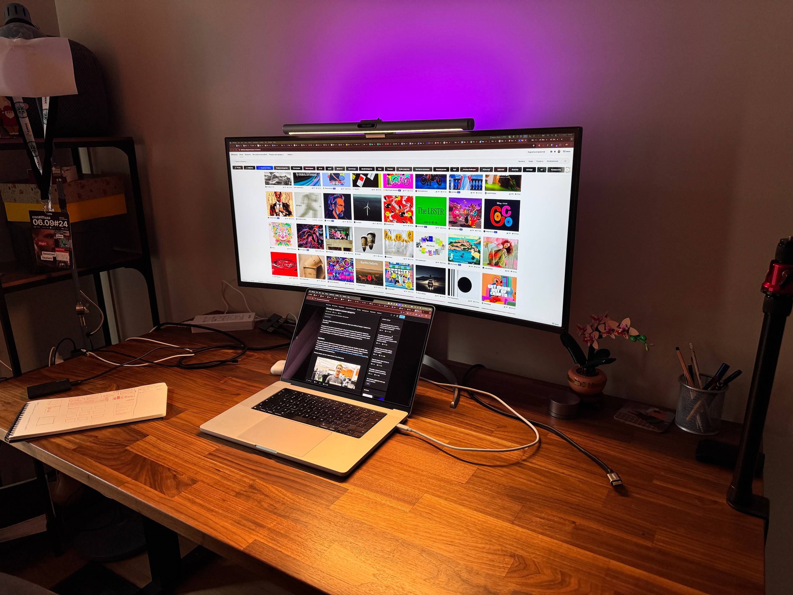 Обновил рабочее место и сделал его практически идеальным. Теперь с кайфом могу сидеть за компом по 12 часов и практически не ощущать дискомфорта. В этом году купил широкоформатный монитор и поставил плойку на стол, чтобы играть в Батлфилд 6 — оч разгружает голову, рекомендую.