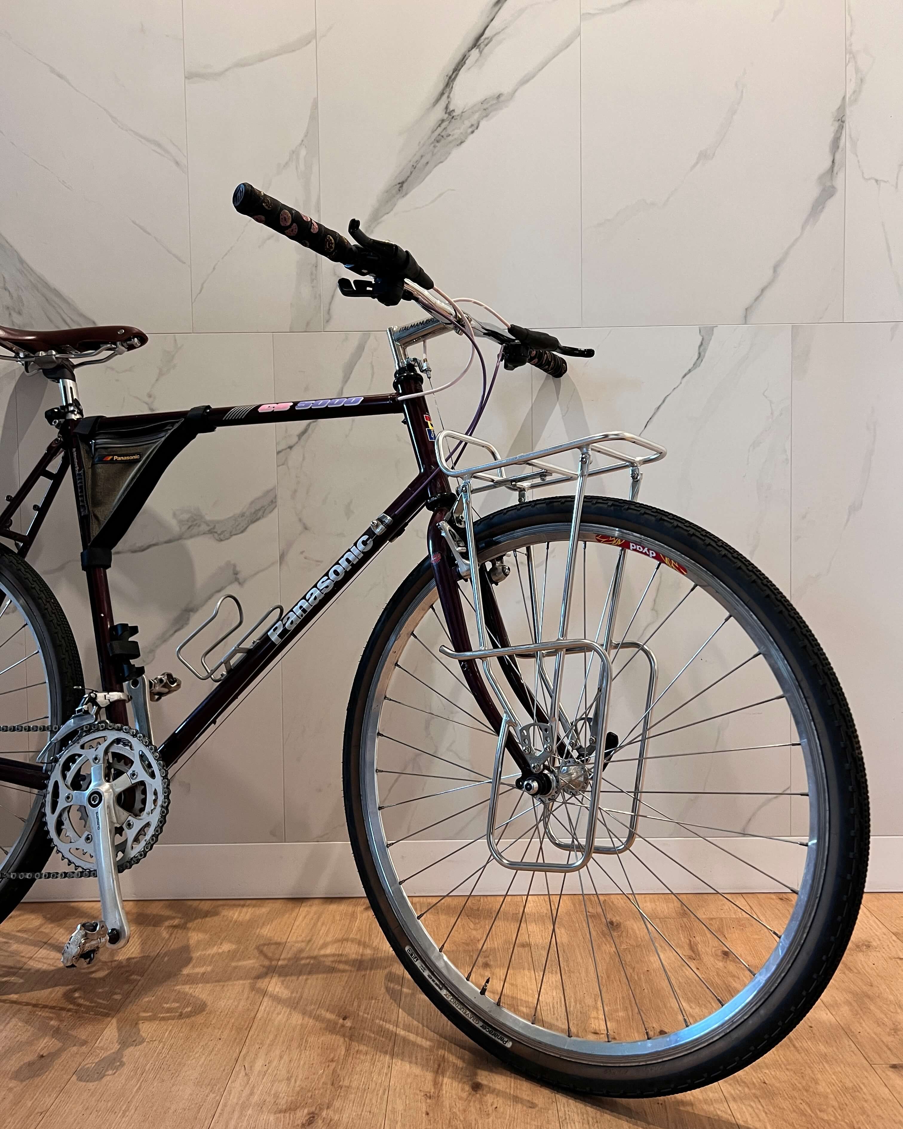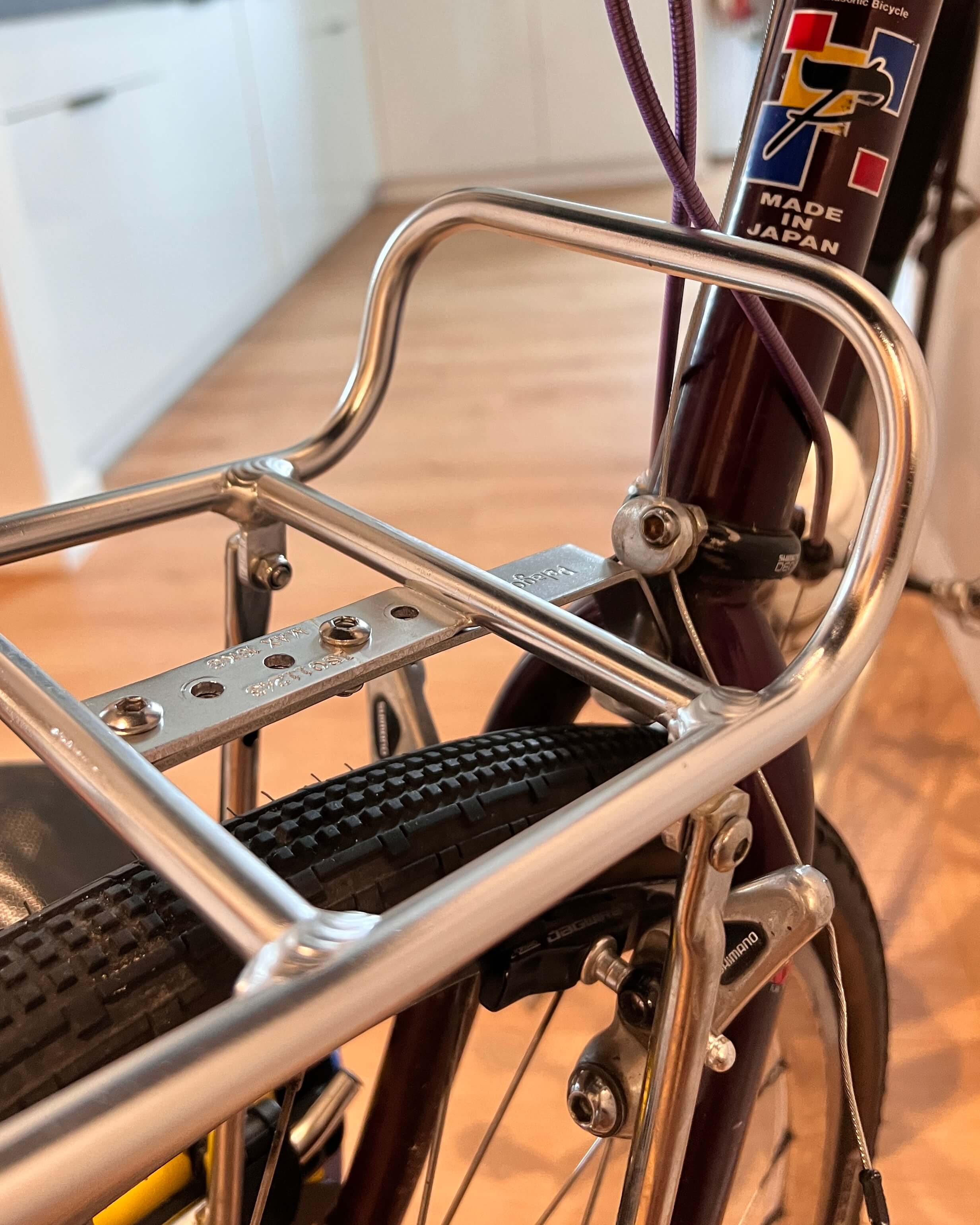 С багажником оказалось сложнее. Я хотел передний, чтобы правильнее распределить вес на велосипеде: сзади моя тощая жопа, а спереди вещи — получается какой-никакой баланс.