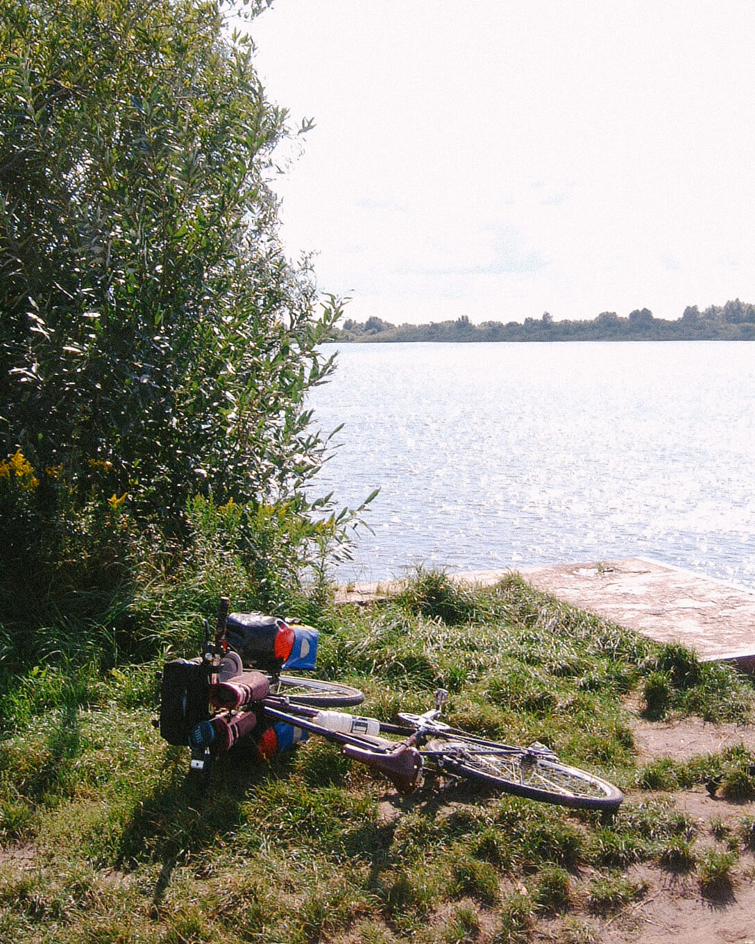 Ехать до кемпинга было около 75км без подъемов. Маршрут строили исходя из того, что настолько груженый я ни разу не ездил. Дорога туда была норм. Местами дул ветер в лицо, из-за чего скорость явно снижалась, но мы никуда не торопились.