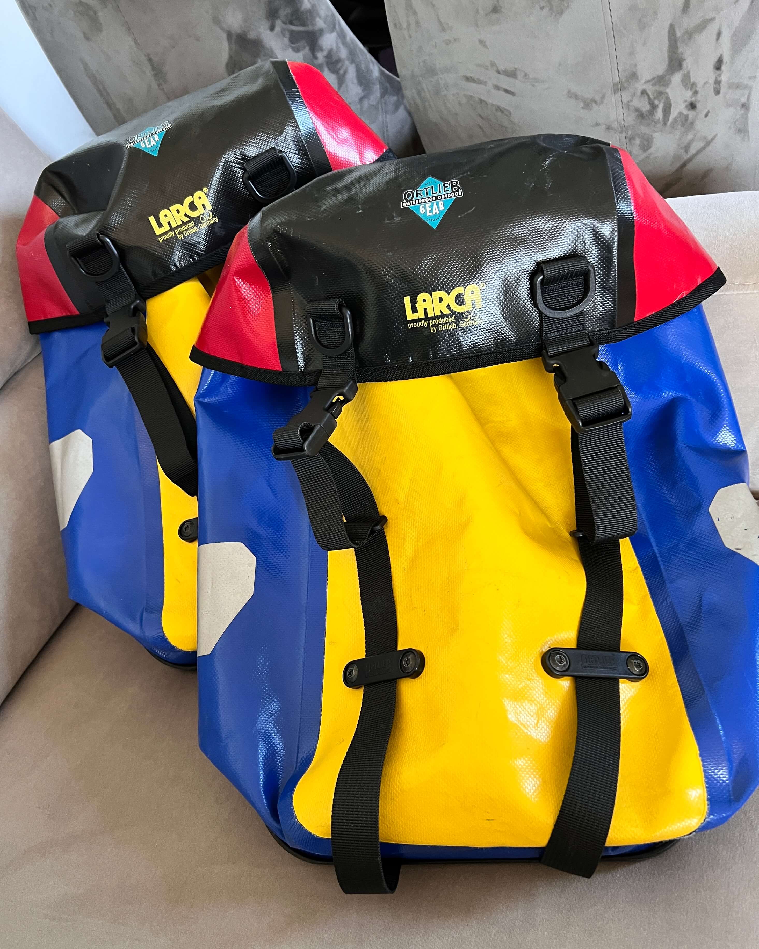Пока думал, что заказывать и в каких количествах — на OLX подвернулись две винтажные Ортлибовские сумки в красивой расцветке. Написал продавцу с предложением торгануться, он попросил прислать фотку велика, куда они будут устанавливаться. Я скинул, он удостоверился, что все кайф и мы пожали руки.