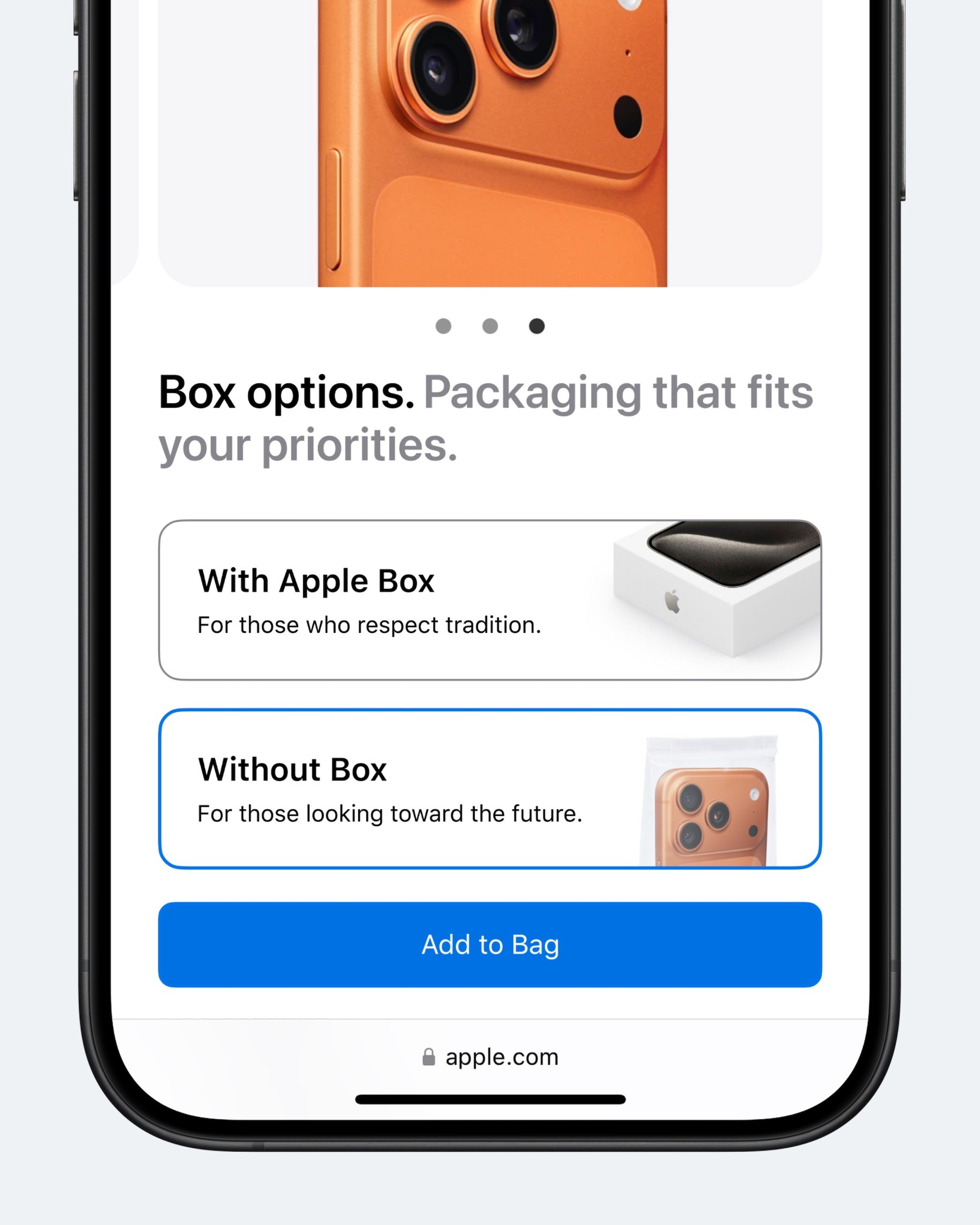 Я думаю Эплу пора продолжать тенденцию к минимизации упаковок и продавать айфоны вообще без коробок. Ну кайф же покупать телефон в эко-пакетике из кукурузы какой-нибудь?