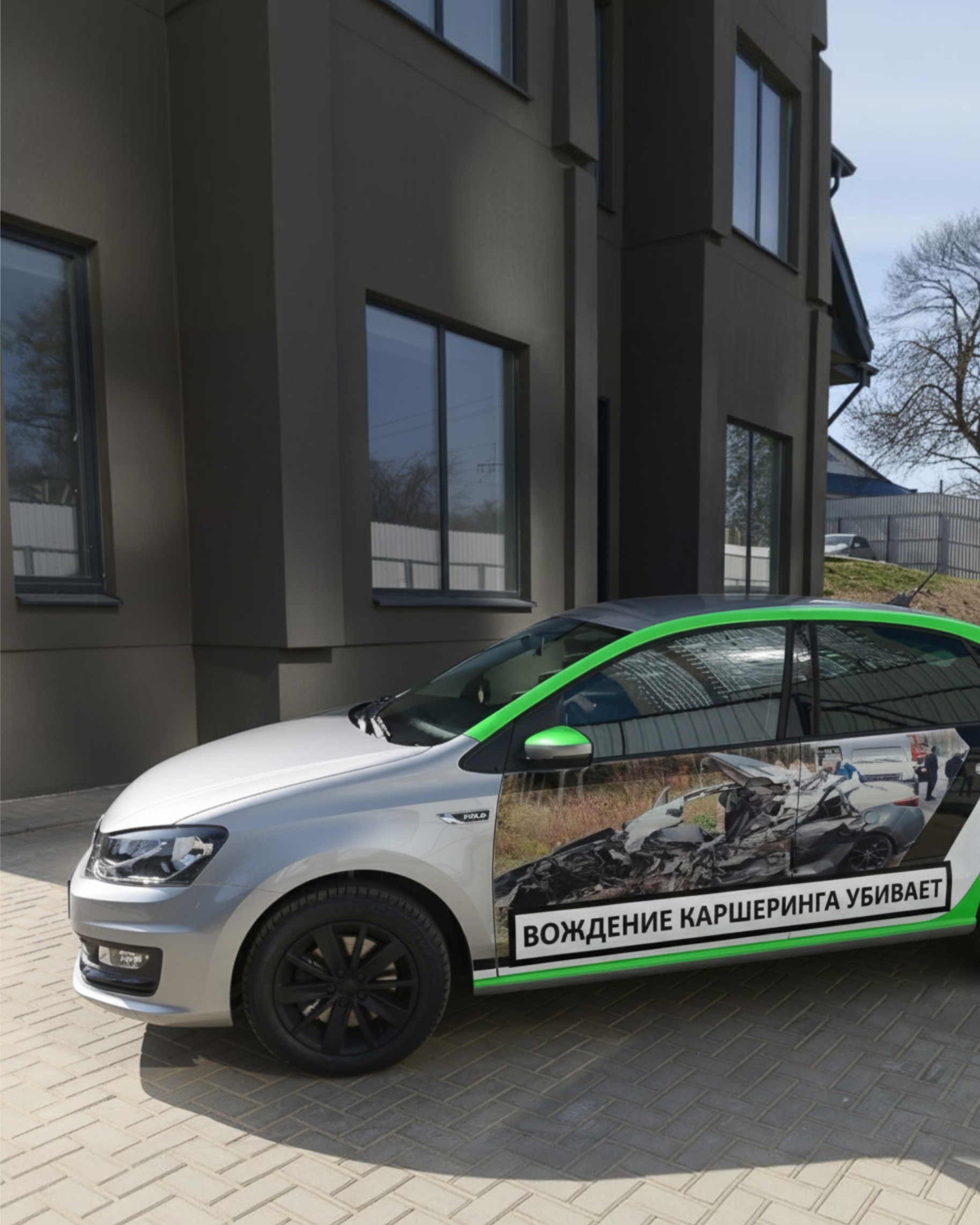 И раз такой формат подразумевает очевидную опасность и для водителя, и для окружающих, я думаю надо с этим что-то делать. А что, если все каршеринговые машины государство обяжет оклеивать в фотографии аварий с предупреждающими подписями.
