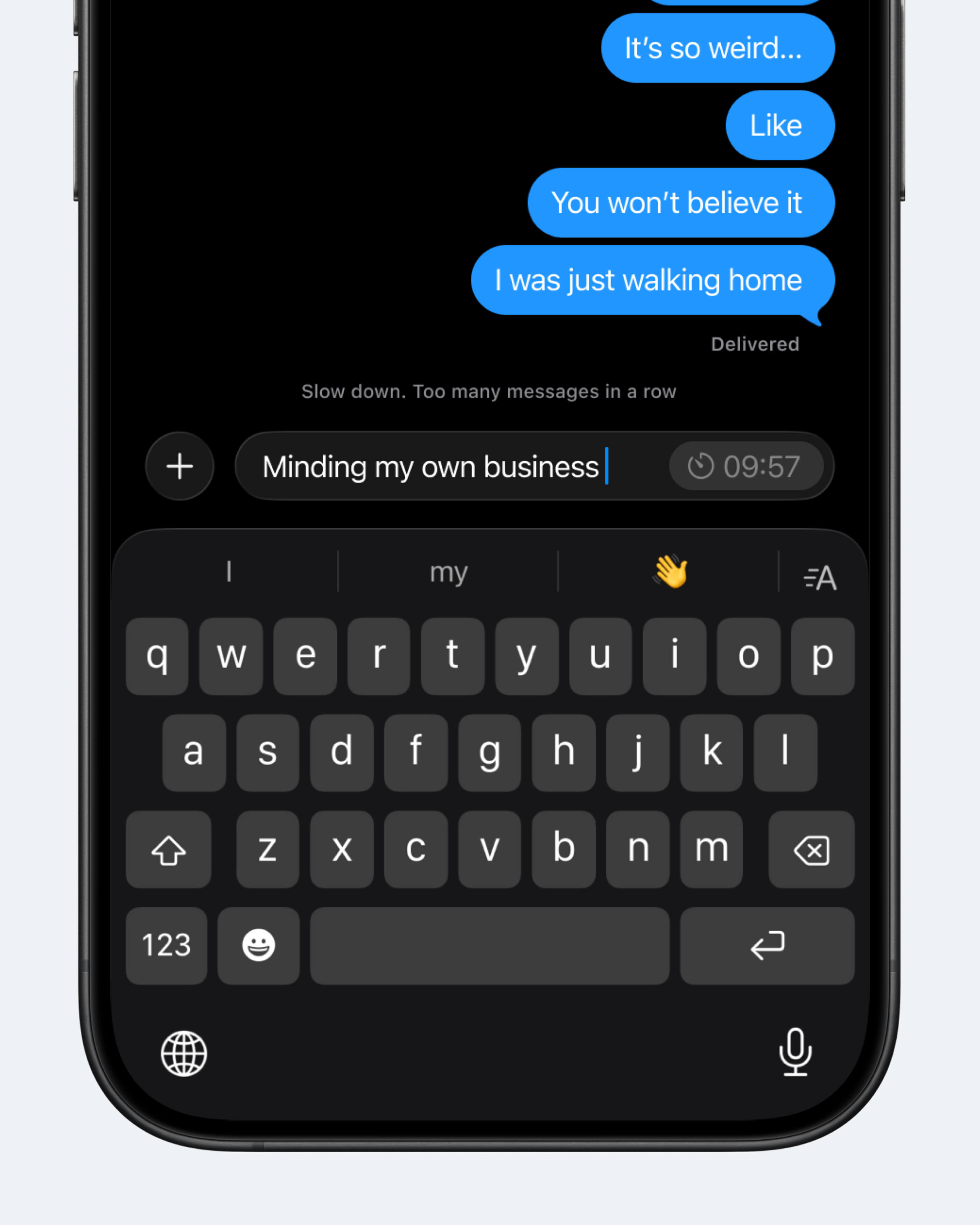 И у телеграма эта проблема по сути уже решена, правда не в обычных чатах с пользователями, а в настройках групп. Там есть Slow mode, где можно настроить задержку на отправку коментов, чтобы не спамили кучей сообщений подряд.