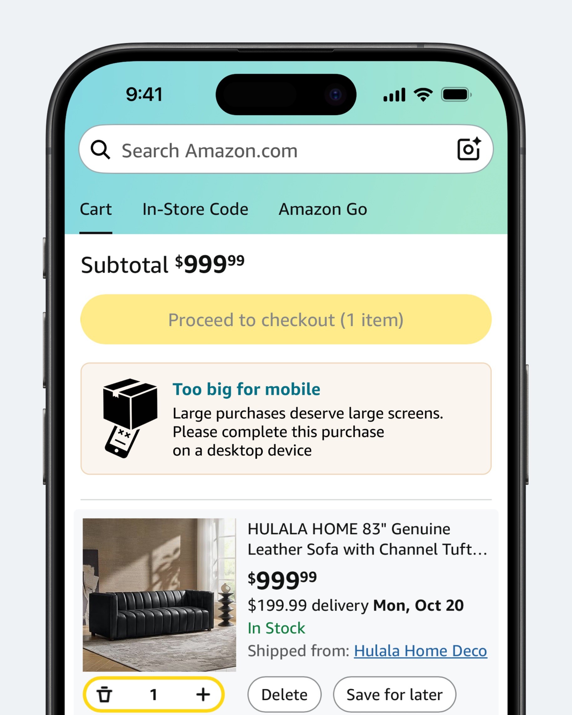 Мне кажется интернет-магазинам вроде Амазона нужно ввести ограничение на крупные покупки с телефона, чтобы люди чувствовали себя комфортнее. Все-таки больше экран = больше информации = больше контроля и меньше стресса.