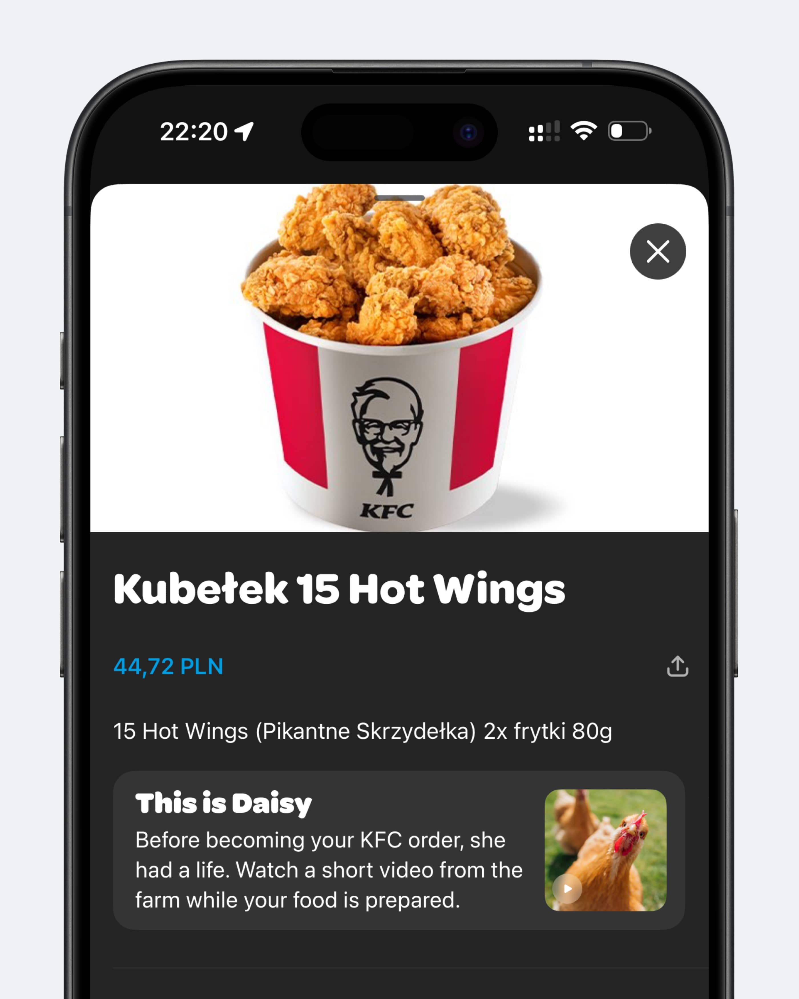 Мне кажется, доставкам еды нужно показывать историю жизни животного, из которого сделано блюдо. Ведь не все задумываются о том, что до готового блюда животное жило свою лучшую жизнь, а потом… получилось ведерко крылышек. Уверен, это может стать отличной причиной не заказывать жирную и вредную еду поздно ночью…