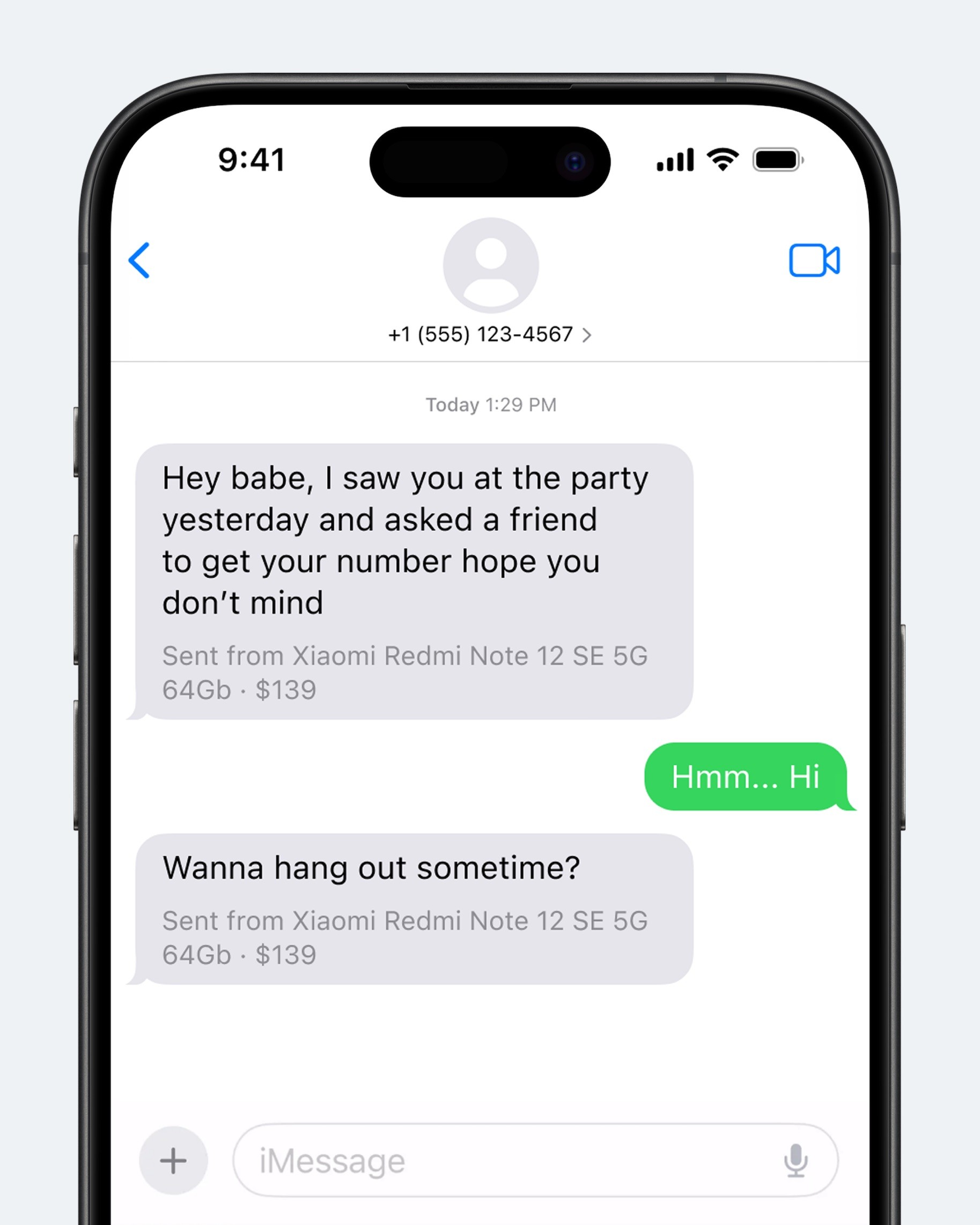 … на Айфоне будет указываться модель и стоимость телефона с которого отправлено сообщение