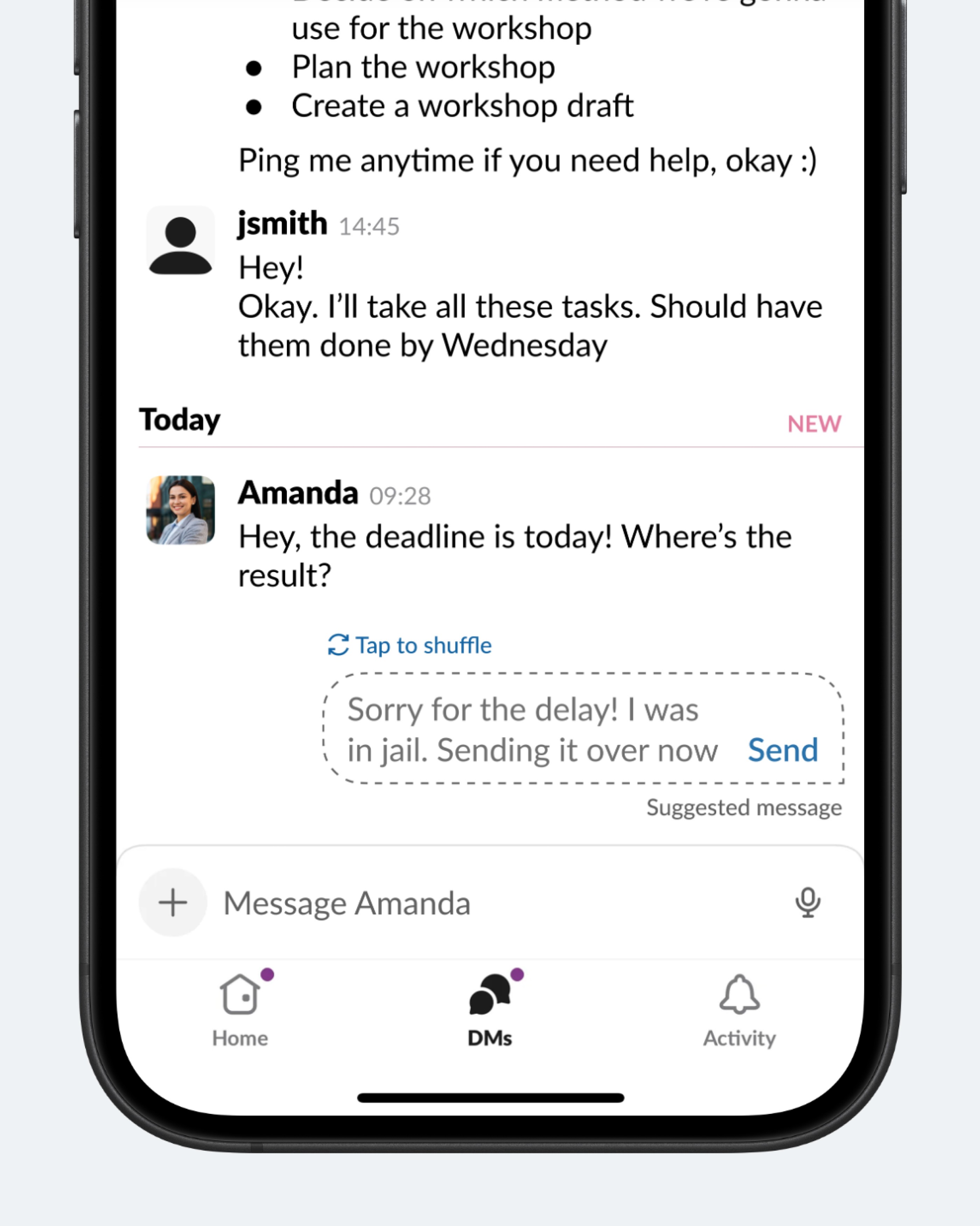 Я подумал, что в эпоху Ai можно встроиться в процесс коммуникации и исходя из контекста переписки, в нужный момент предлагать отмазки, которые можно отправить в один клик. Кажется, это может сохранить работу большому количеству безответственных исполнителей.