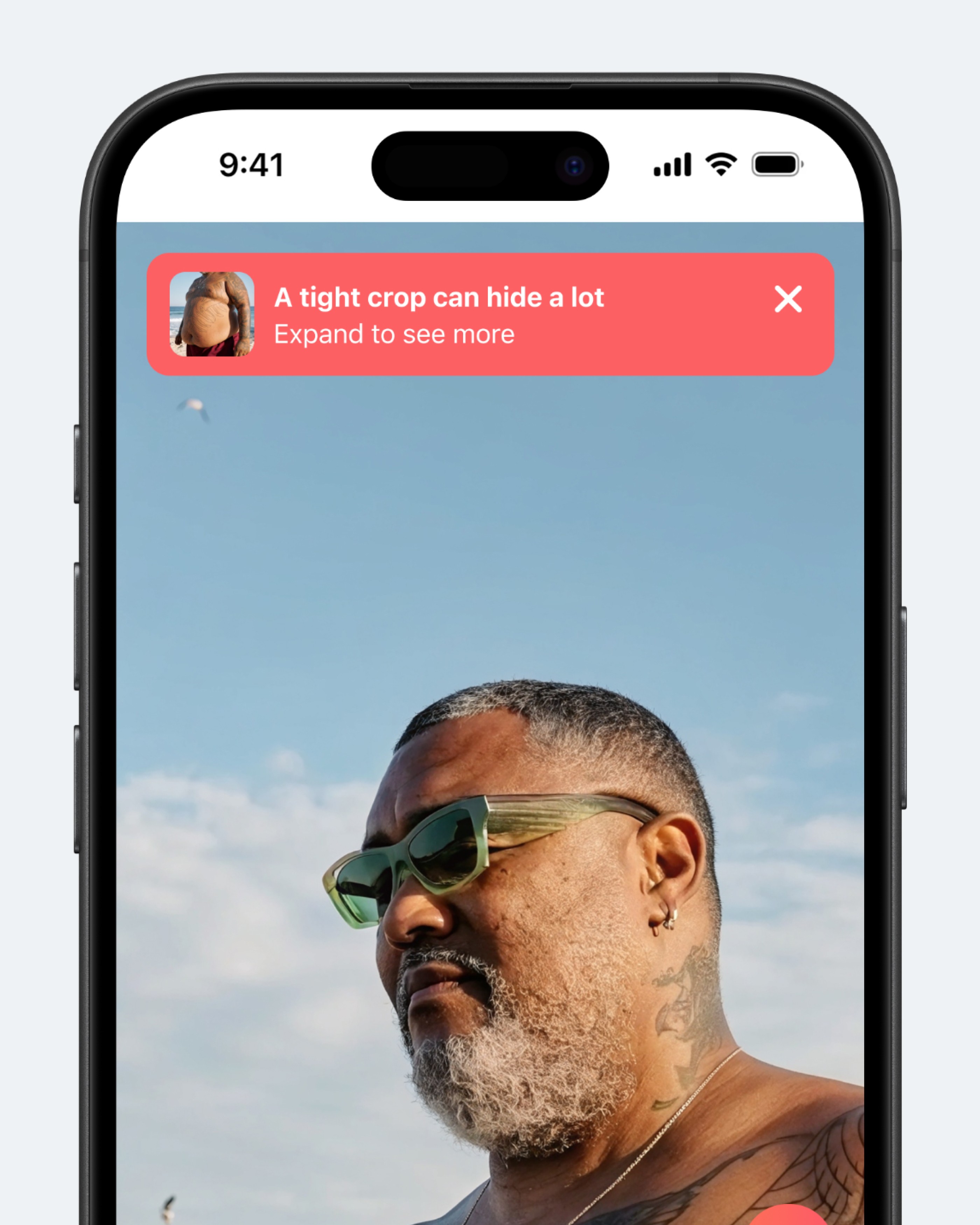 … Тиндер будет показывать, что скрывается за кадрированием фотографии?