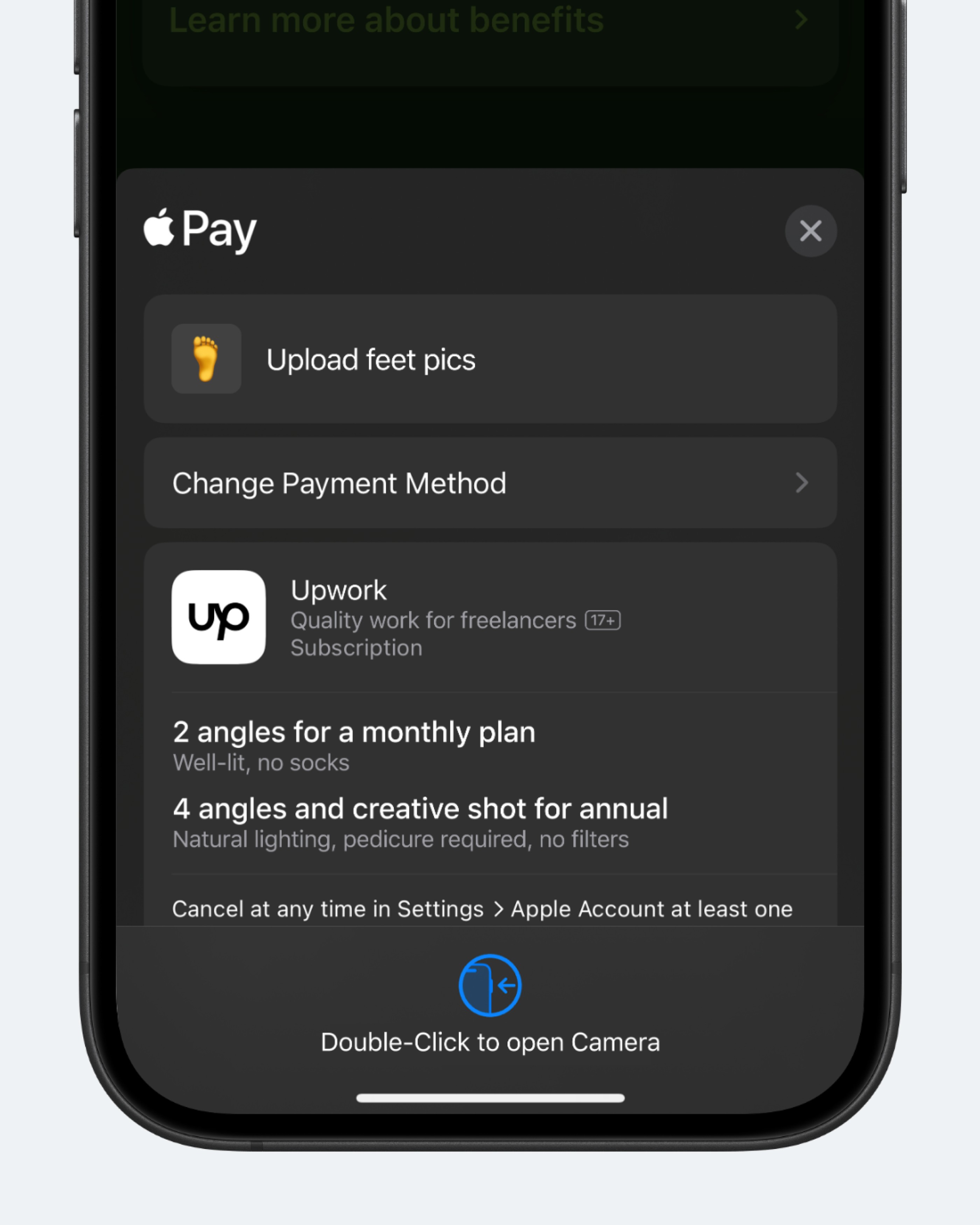 … в Apple Pay появится возможность оплачивать фотками ног?