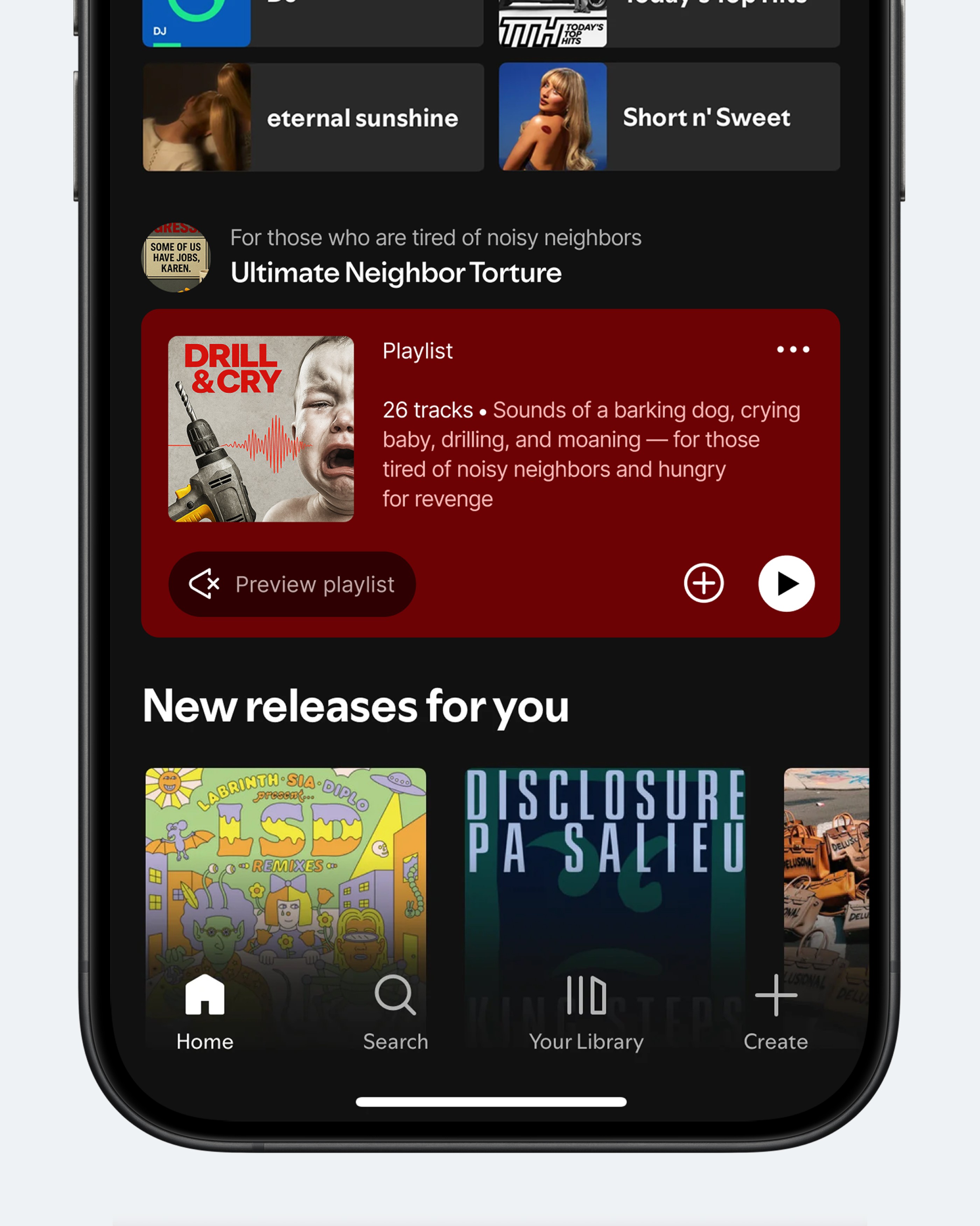 Как-то я наткнулся на видос, где чел делал всякие приспособления, вроде автоматического долбления в стены и стучания по трубам. Но для этого надо хотя бы высшее образование, поэтому я придумал вариант попроще. Отдельный плейлист в Спотифае со сверлением, плачем ребенка и лаем собак. Достаточно включить звук погромче перед выходом из дома и вуаля, соседи в перерывах между сверлением тоже страдают.