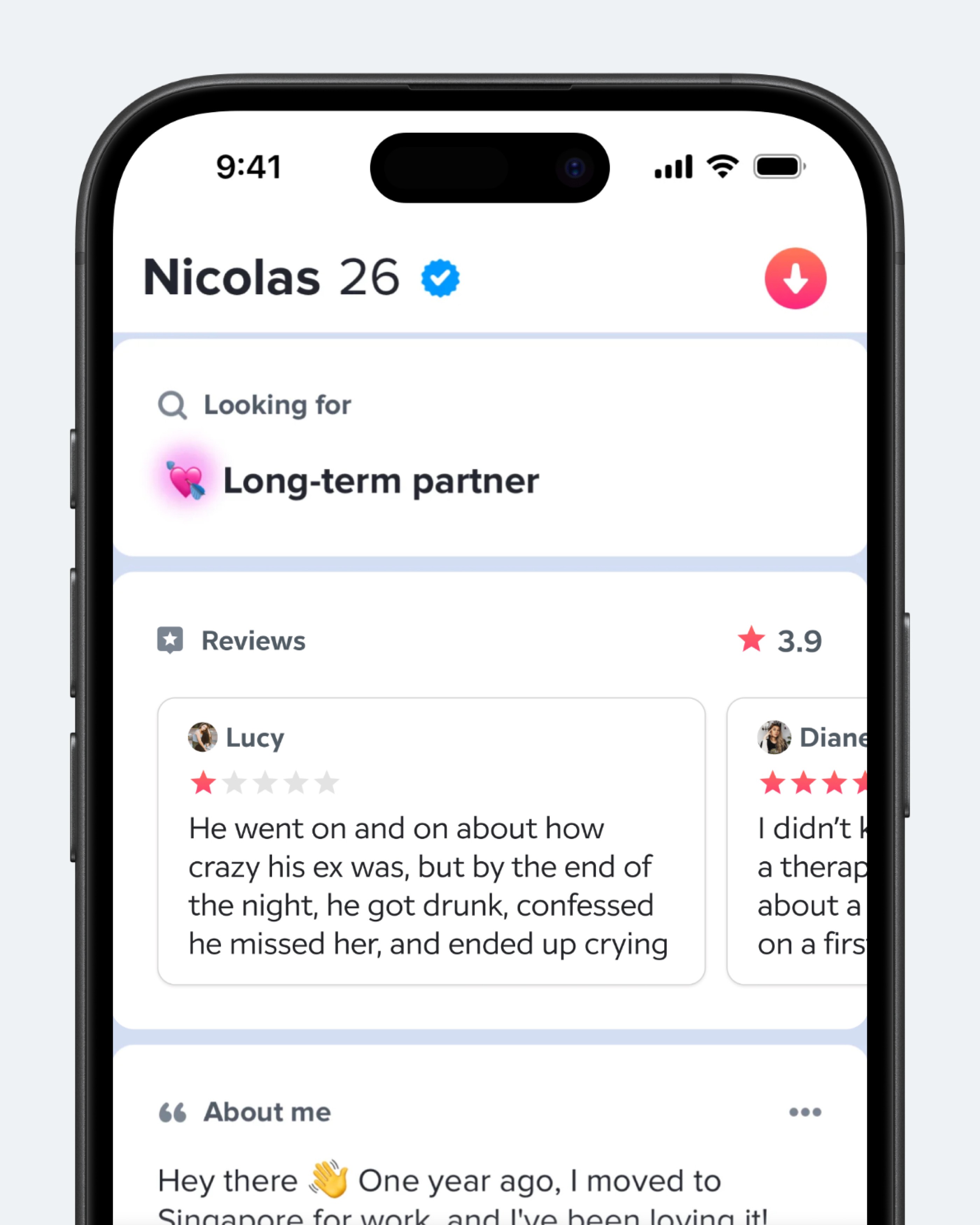 Я думаю это здорово бы увеличило качество мэтчей и повлияло на ключевую миссию продукта — находить пару для тех или иных целей. А чтобы модерировать отзывы и оставлять реальные, можно просить прикладывать пруфы и в случае спорных ситуаций проводить присяжный «суд», где будут прошлые партнеры и другие мэтчи.