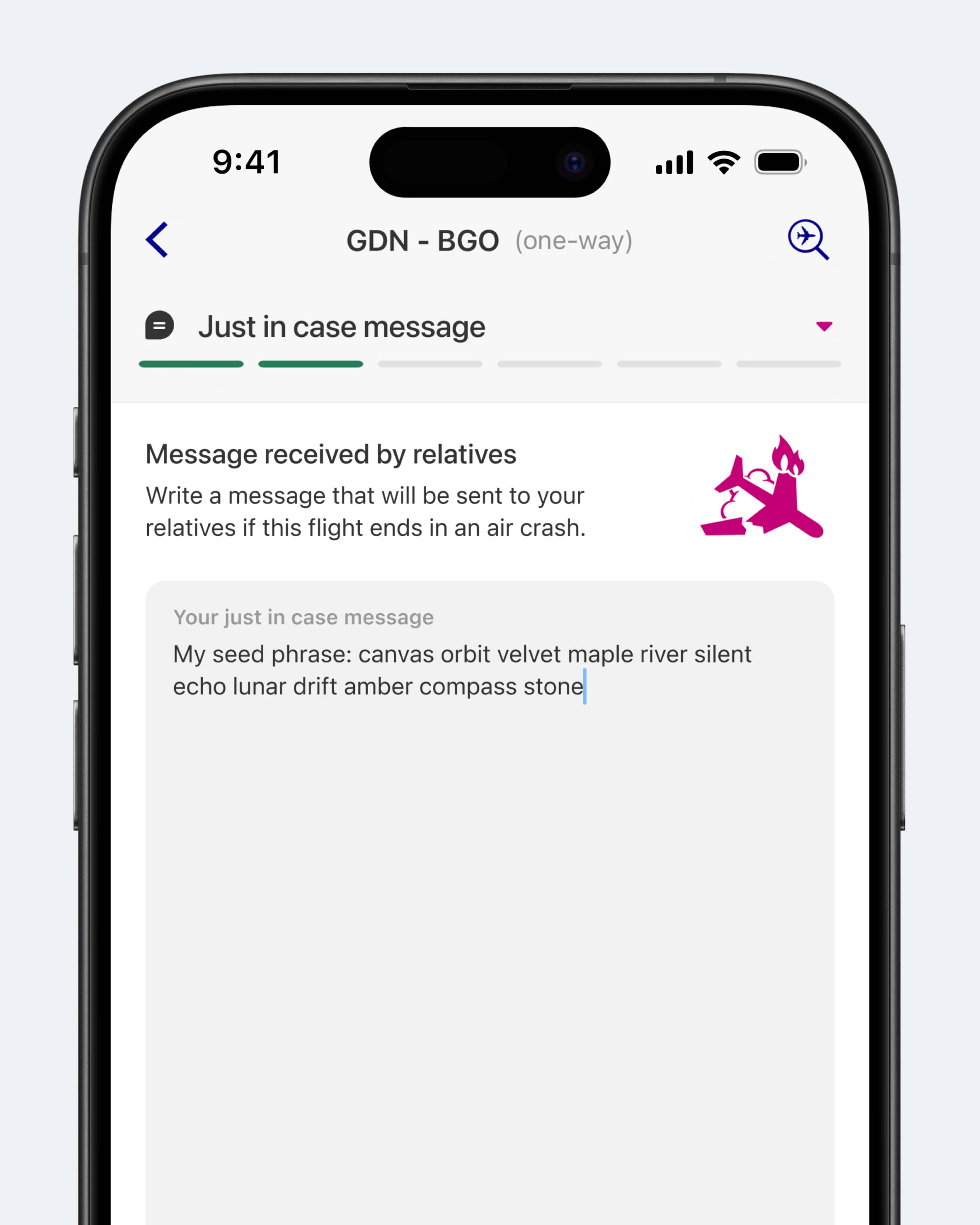 … при покупке билетов на самолет, можно будет написать сообщение родственникам на случай авиакатастрофы?